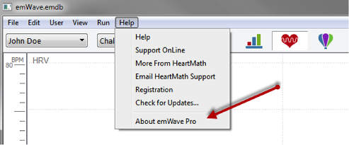 Make sure you have updated your emWave Pro software to the latest version (v3.5 or greater). To check this on Windows, open emWave Pro and go to Help and About emWave Pro