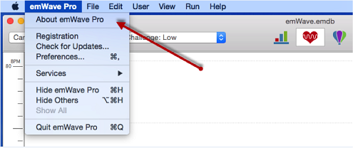 To check this on Mac, go to the emWave Pro menu and choose - About emWave Pro