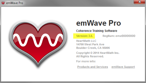 Ensure that you see version 3.5 or greater, as shown below, or go back to the same location, as shown above and select “Check for Updates….” to download the latest version of emWave Pro.