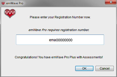 Once you have received your emWave Pro Plus registration number, you need to insert it into your existing emWave Pro software to activate the new emWave Pro Plus HRV Assessment features.