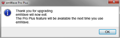Once you click “OK”, you’ll see the following dialogue box. Click “OK” again to close your emWave Pro.