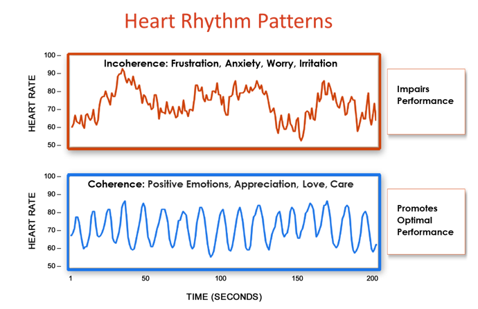 The HeartMath® Institute Research Center has explored the physiological mechanisms by which the heart and brain communicate and how the activity of the heart influences our perceptions, emotions, intuition and health. In the early 1990s, we were among the first to conduct research that not only looked at how stressful emotions affect the activity in the autonomic nervous system and the hormonal and immune systems, but also at the effects of emotions such as appreciation, compassion and care. Over the years, we have conducted many studies that have utilized many different physiological measures such as EEG (brain waves), SCL (skin conductance), ECG (heart), BP (blood pressure) and hormone levels, etc. Consistently, however, it was heart rate variability, or heart rhythms that stood out as the most dynamic and reflective indicator of one's emotional states and autonomic nervous system dynamics. It became clear that stressful or depleting emotions such as frustration and overwhelm lead to increased disorder in the higher-level brain centers which is reflected in heart rhythms and adversely affects the functioning of virtually all bodily systems. This eventually led to a much deeper understanding of the neural and other communication pathways between the heart and brain. Numerous studies have since shown that heart coherence is an optimal state-specific physiological pattern associated with increased cognitive function, self-regulatory capacity, emotional stability and resilience, and that people can learn to shift into the coherent state in the heat of the moment.
