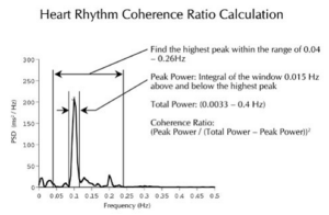 When you shift into a state of coherence, the complex "noise" of various biological influences quiets down. Your heart and breath synchronize into a single rhythm. On the graph, this results in the surrounding bars disappearing and one dominant, bell-shaped peak forming around the 0.1 Hz frequency. The taller this peak, the more "power" is concentrated in your coherent state.