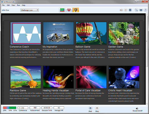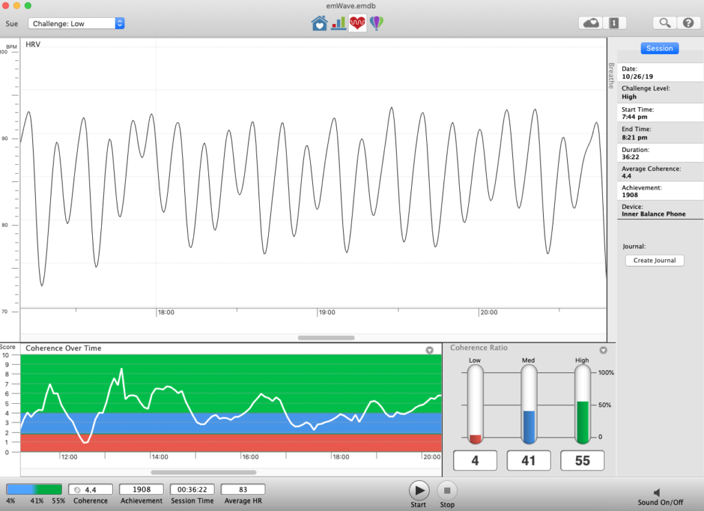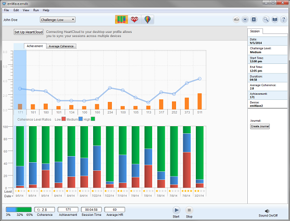 The emWave software automatically saves the data from each session and allows you to review your progress.