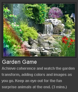 The Garden game starts as a dry, black-and-white nature scene. As you shift into medium or high coherence, life returns to the garden.