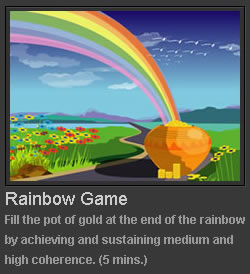 - Action: A rainbow begins to form in the upper-left corner of the screen. As you stay coherent, the rainbow extends across the sky until it reaches a pot of gold.