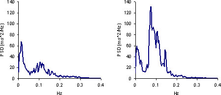 Group mean HRV power spectra calculated from 10-minute ECGs recorded before subjects completed the battery of cognitive performance tasks. The left-hand graph shows the mean HRV power spectrum before subjects were trained in the HeartMath coherence-building techniques, while the right-hand graph shows the mean power spectrum after they learned and practiced the techniques for seven weeks. Note the increase in power around the 0.1 Hz frequency range, indicating a pronounced increase in heart rhythm coherence. This shift is particularly notable because subjects were not specifically instructed to use the techniques during the post-recording.