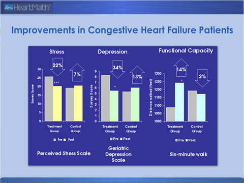 Patients with congestive heart failure demonstrated significantly increased functional capacity as well as reduced stress and depression after learning HeartMath techniques.